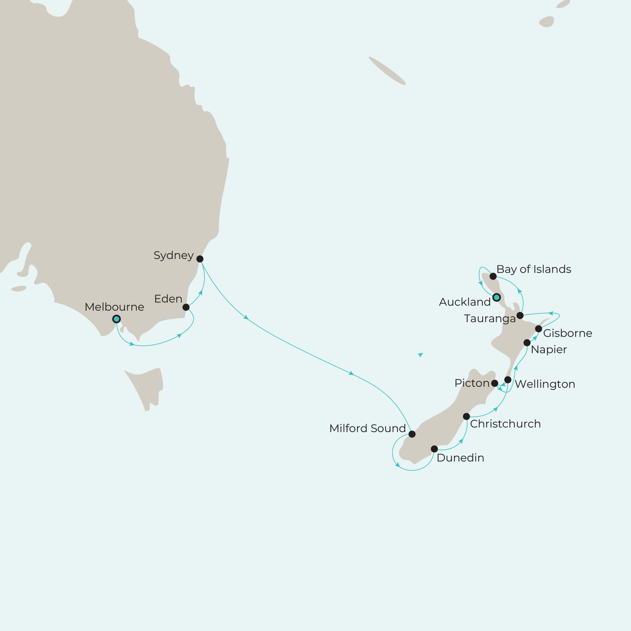 Savour an unforgettable 16-night voyage along Australia’s east coast to New Zealand on board the elegant Azamara Pursuit. Explore charming Eden and delight in overnight indulgence in cosmopolitan Sydney, before crossing the Tasman Sea to New Zealand’s South Island, experiencing the awe-inspiring Milford Sound, a realm of towering cliffs, cascading waterfalls, and abundant wildlife.