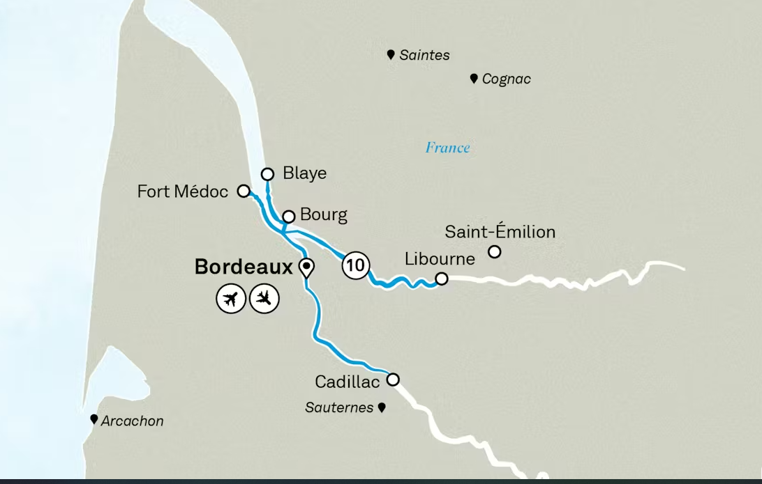 Transfer to the airport and fly to Bordeaux, France. Check into your hotel and enjoy time at leisure.