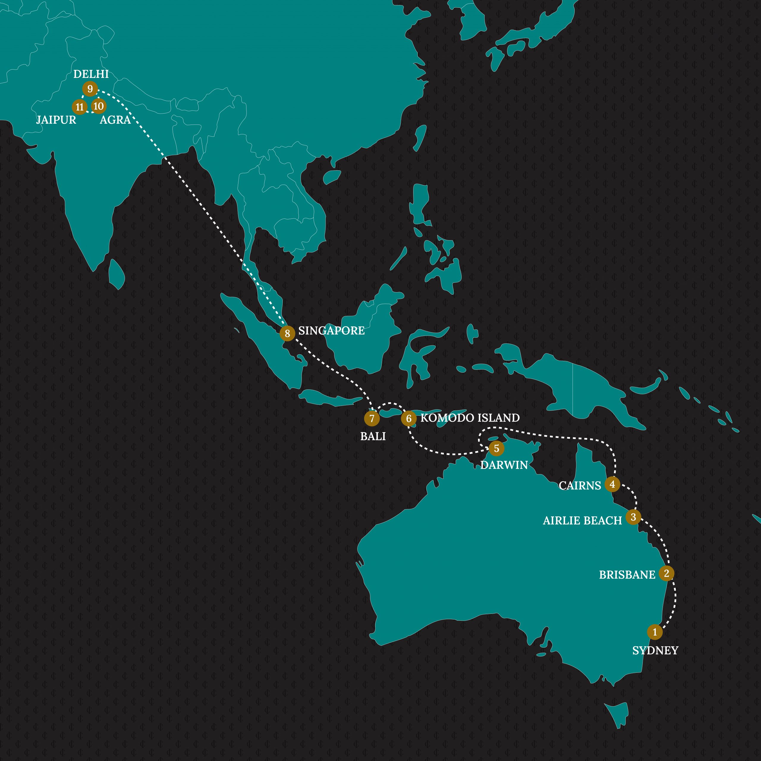 Disembarking in Singapore, you’ll check in for a one-night hotel stay before flying to Delhi to experience the wonders of India’s Golden Triangle. During this seven-night, fully escorted tour, you’ll be spellbound by Agra’s ivory-white Taj Mahal, taken back to the time of the maharajas at Jaipur’s Amber Fort, and embrace by the colourful energy of Delhi’s streets.