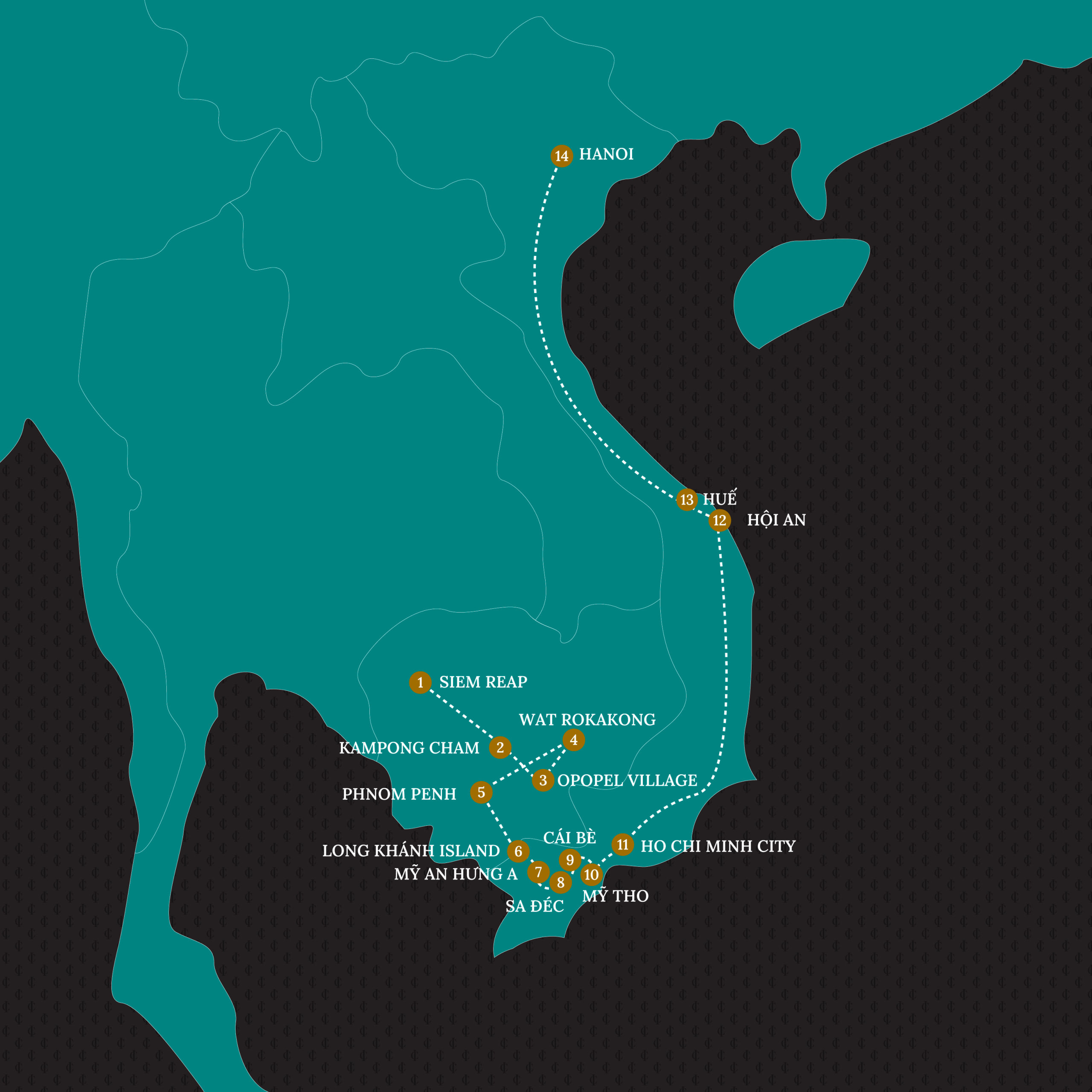 From ancient temples to modern culinary masterpieces, this culturally rich escape takes you from the awe-inspiring Angkor Wat in Siem Reap to the bustling streets of Ho Chi Minh City and the historic charm of Hoi An and Hanoi. Along the way, indulge in authentic market tours, hands-on cooking demonstrations, and an intimate Mekong River cruise.