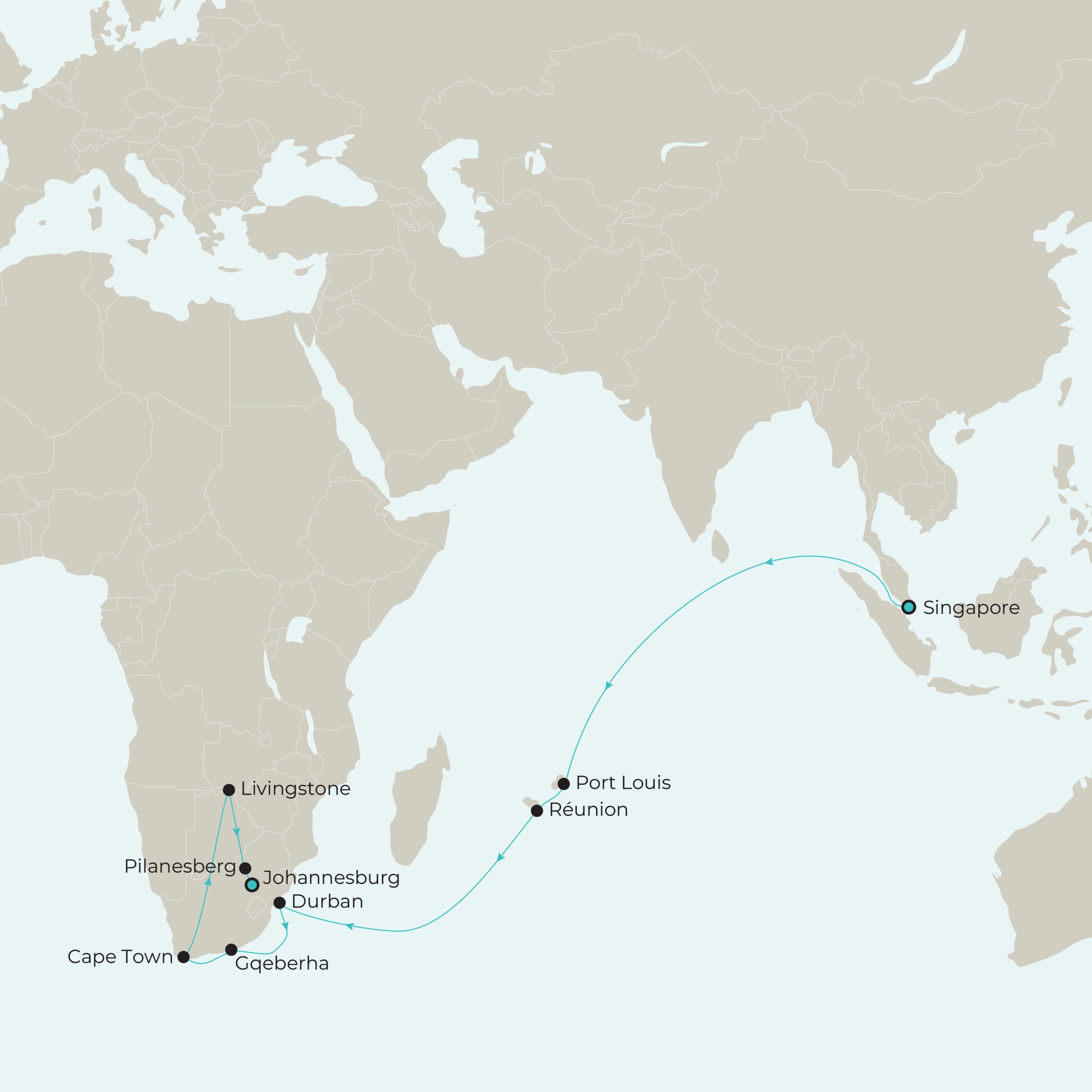 The perfect complement to your safari adventure, the luxurious Queen Victoria will transport you between the world’s largest continents. Embrace a melting pot of cultures in Mauritius, Réunion, Gqeberha, and beyond – all enhanced by Cunard’s refined atmosphere.